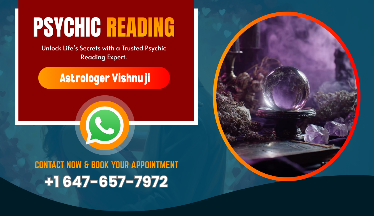 Psychic Vishnuji is widely recognized as the Best Astrologer & Psychic Reader in Toronto, offering accurate predictions and powerful spiritual guidance to people from all walks of life. With years of experience in astrology and psychic reading, he has helped countless individuals overcome challenges related to love, marriage, career, and family issues. His deep knowledge of Vedic astrology, combined with intuitive psychic abilities, allows him to provide clear insights and effective solutions tailored to each client’s situation. Known for his honest approach and quick results, Psychic Vishnuji specializes in love problem solutions, ex-love back, negative energy removal, and spiritual healing. People trust him for his dedication, confidentiality, and ability to bring positivity and success into their lives.